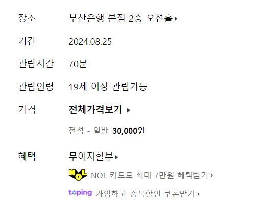 A. 부산은행 본점 인근에 주차장이 있으며, 주차 요금은 시간당 약 3,000원입니다. 공연 당일 혼잡할 수 있으니 대중교통 이용을 권장합니다.